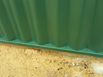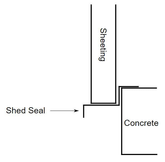 Shed seal is a custom flashing that runs around the base of the shed to help prevent entry from pests. It folds over the concrete slab and under the sheeting, leaving the sheet profile visible to the base. Please note, pest may still be able to get in using other means i.e. gaps between sliding doors