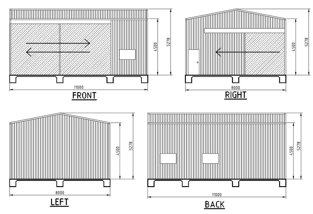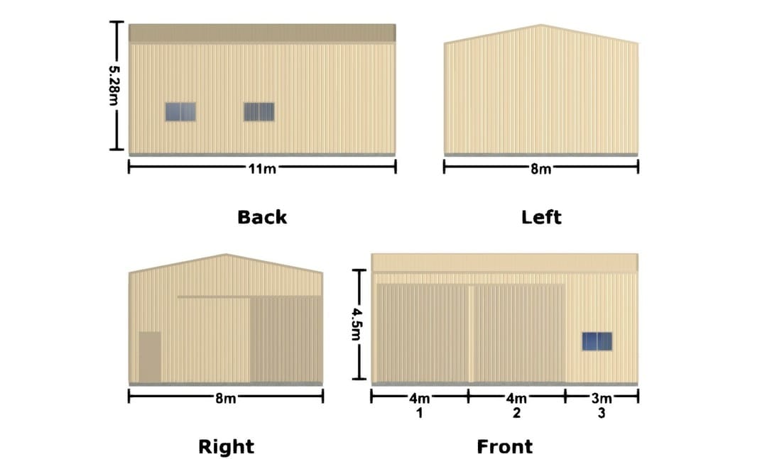 This workshop shed is great for storage, workshops, or vehicle protection. With 88m² of floor space and 4.5m height, it provides plenty of space for your needs. The 11° pitched roof gives it a classic look.