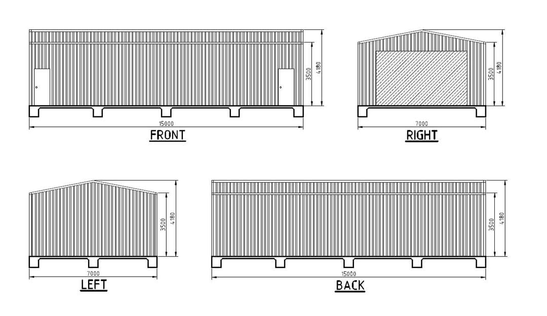 This parking shed is great for storage, workshops, or vehicle protection. With 72m² of floor space and 3.4m height, it provides plenty of space for your needs. The 11° pitched roof gives it a classic look.