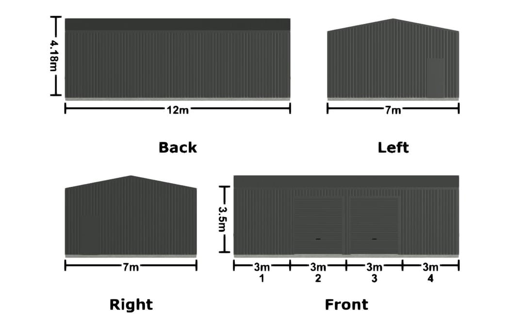 This parking shed is great for storage, workshops, or vehicle protection. With 84m² of floor space and 3.5m height, it provides plenty of space for your needs. The 11° pitched roof gives it a classic look.
