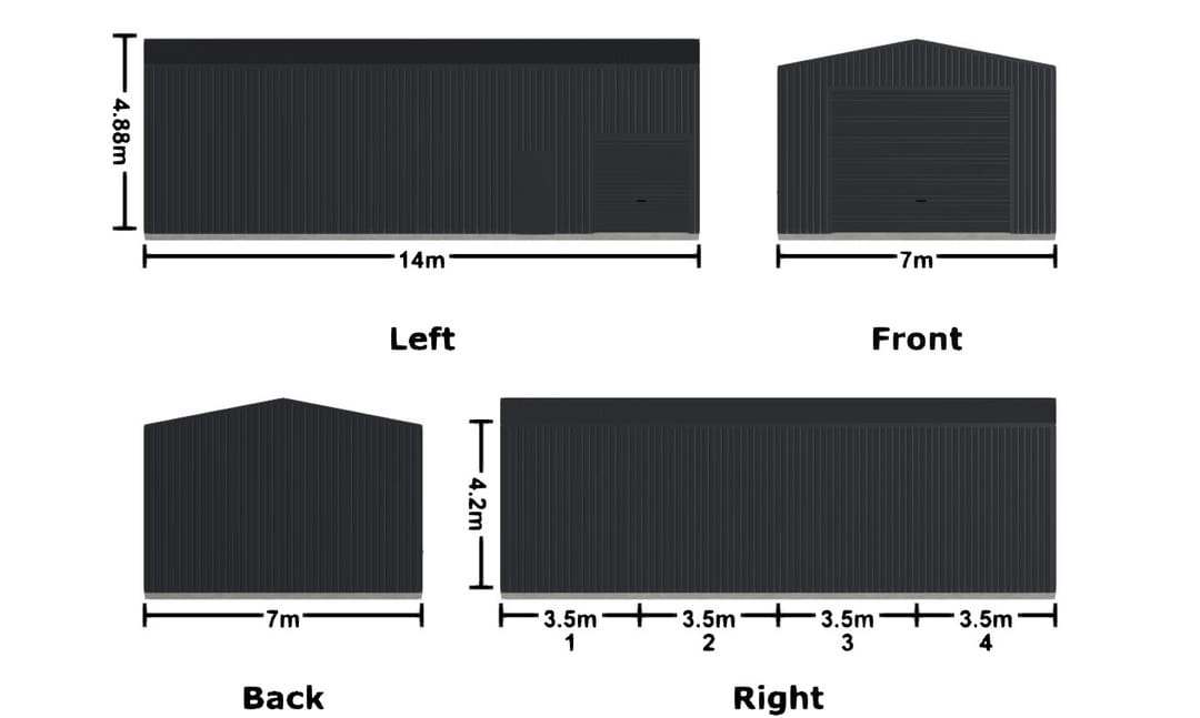 - Dimensions: 14m x 7m x 4.2m