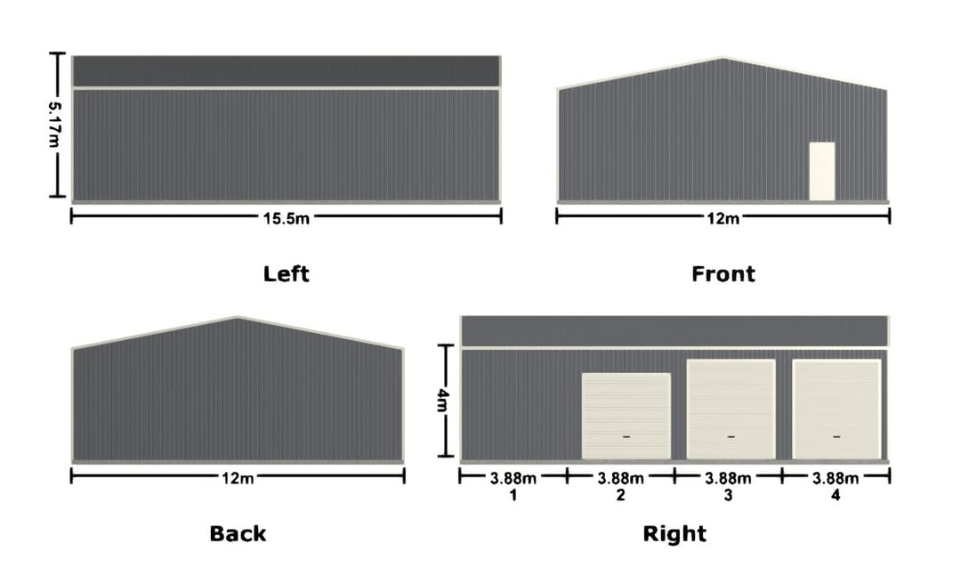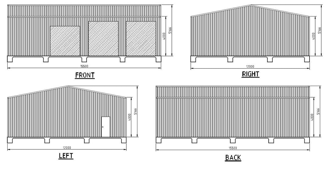 15.5m x 12m x 4m Shed Wandi