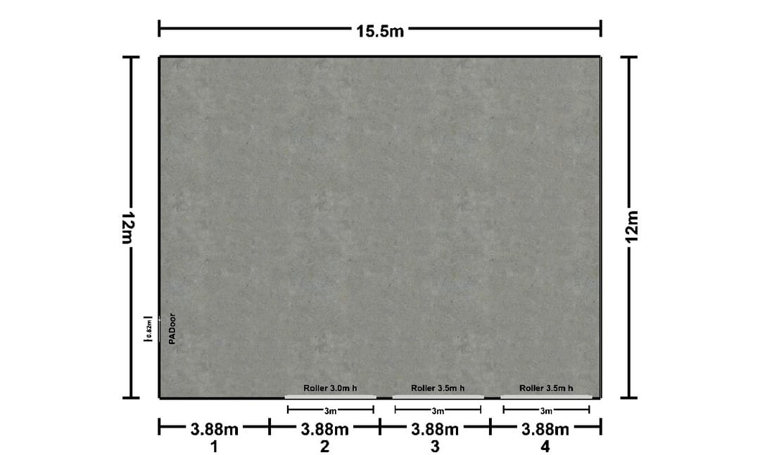 • Dimensions: 15.5m x 12m x 4m