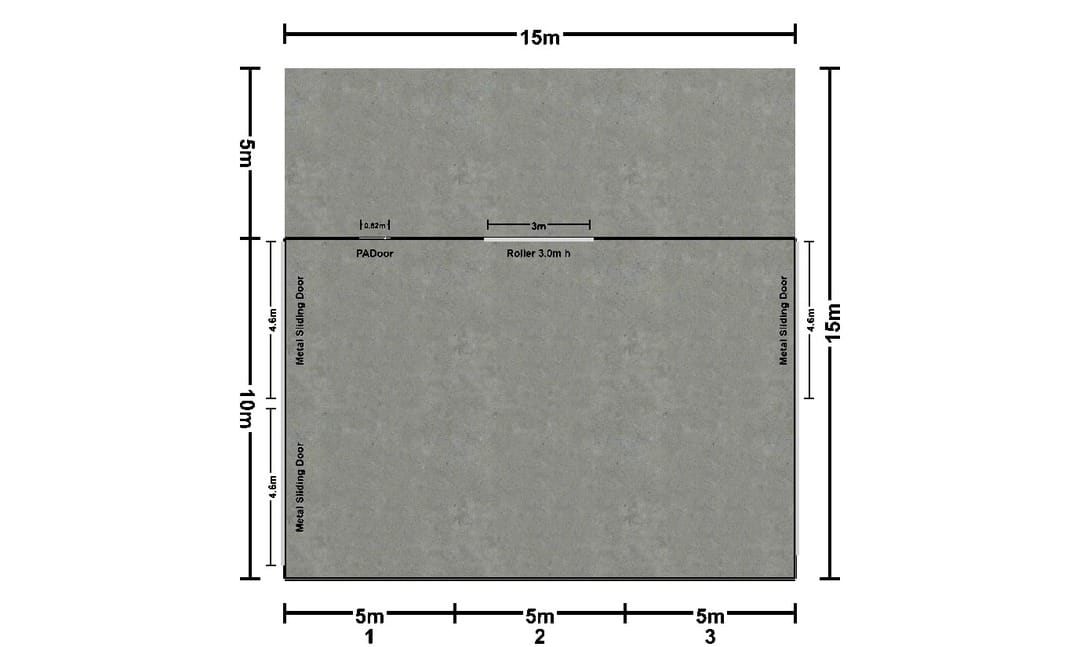 • Dimensions: 15m x 10m x 4.2m