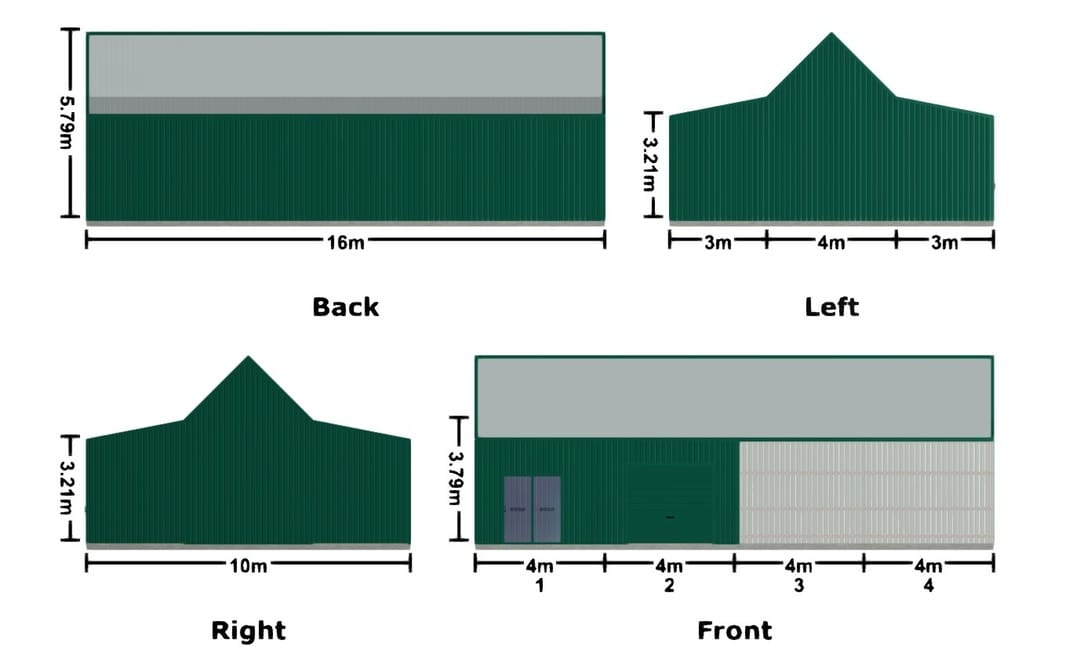 - Dimensions: 16m x 10m x 3.2m