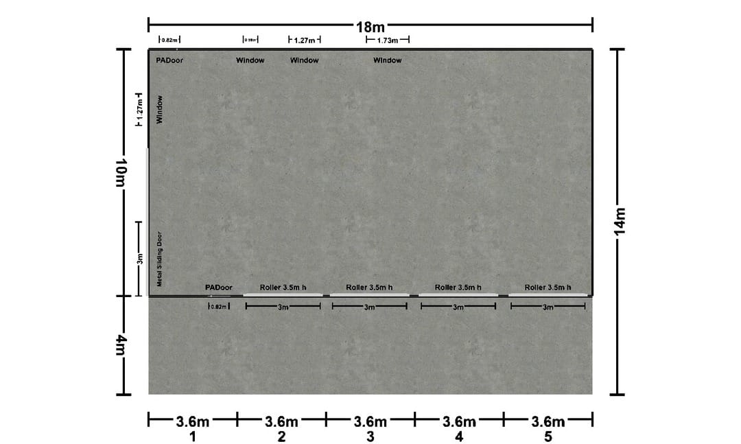 - Dimensions: 18m x 10m x 4m