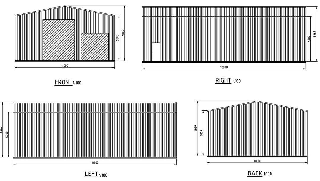 18m x 11m x 5m Garage Workshop Shed Brigadoon