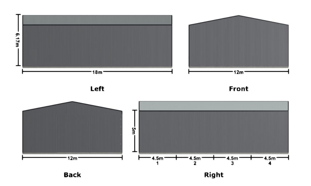 - Dimensions: 18m x 12m x 5m