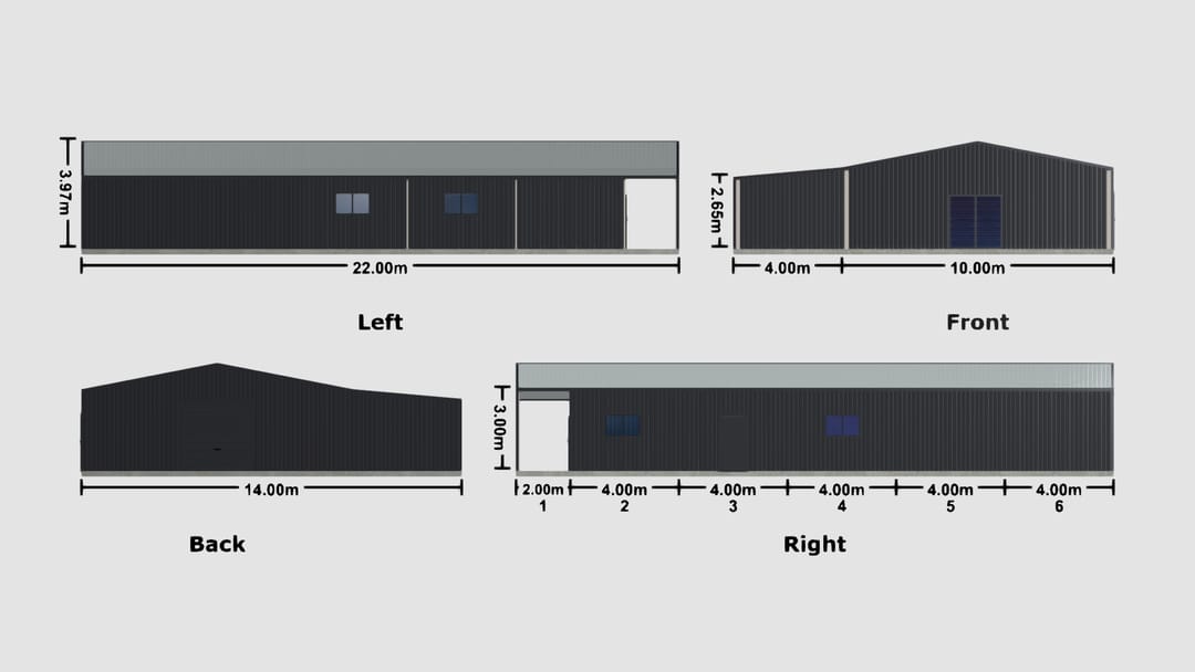 This shed is great for storage, workshops, or vehicle protection. With 200m² of floor space and 5m height, it provides plenty of space for your needs. The 11° pitched roof gives it a classic look.