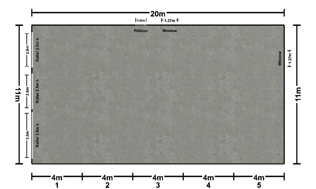 - Dimensions: 20m x 11m x 5m
