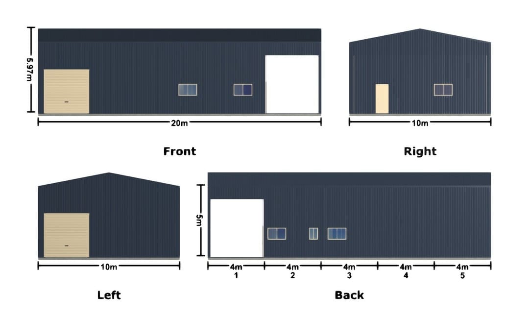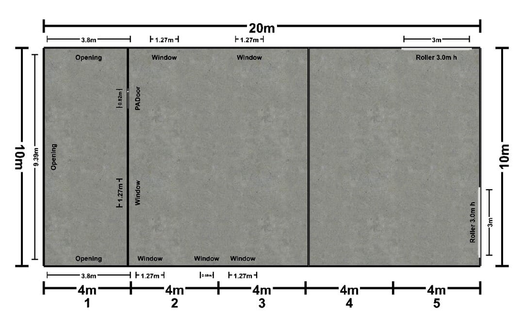 - Dimensions: 20m x 8m x 3.6m