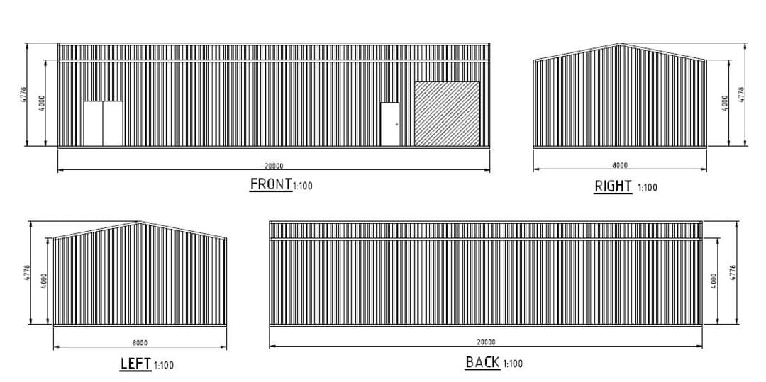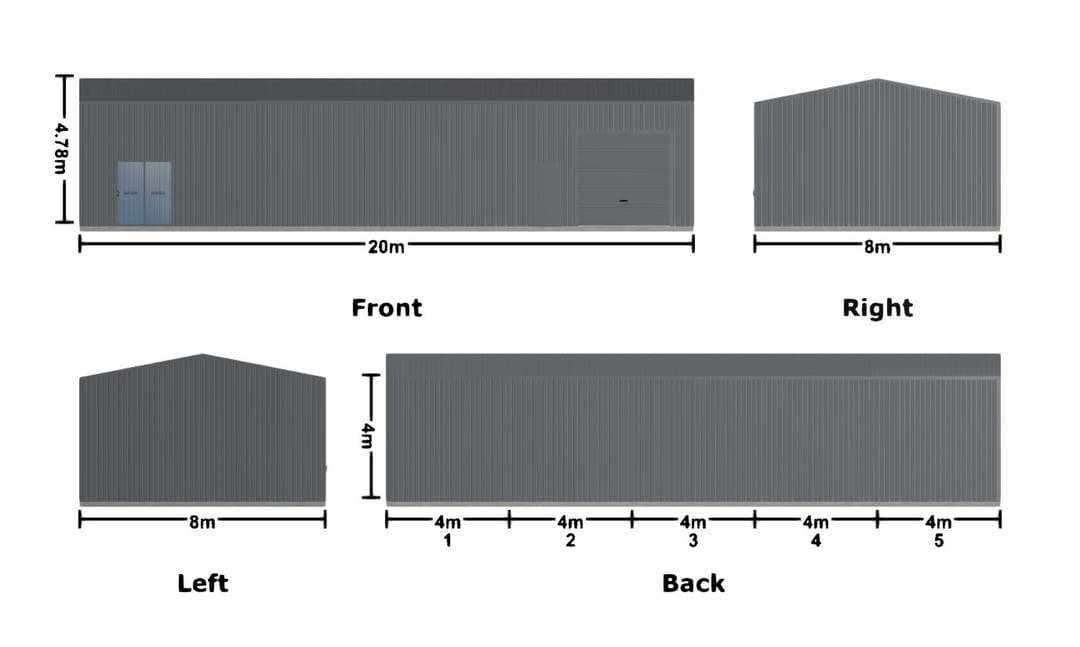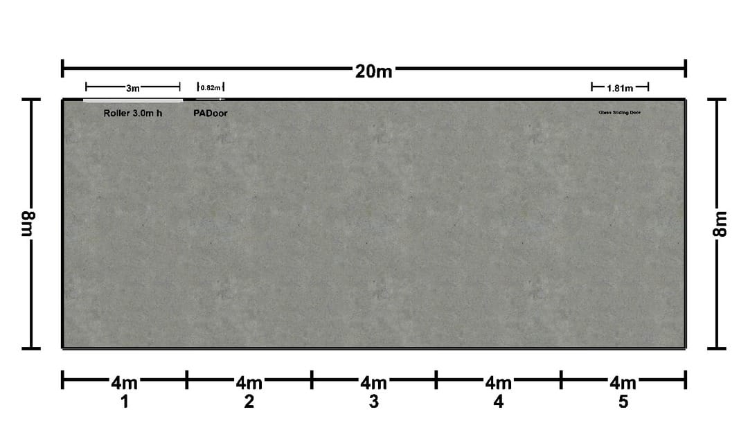 - Dimensions: 20m x 8m x 4m