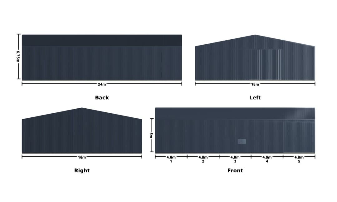 - Dimensions: 24m x 18m x 5m