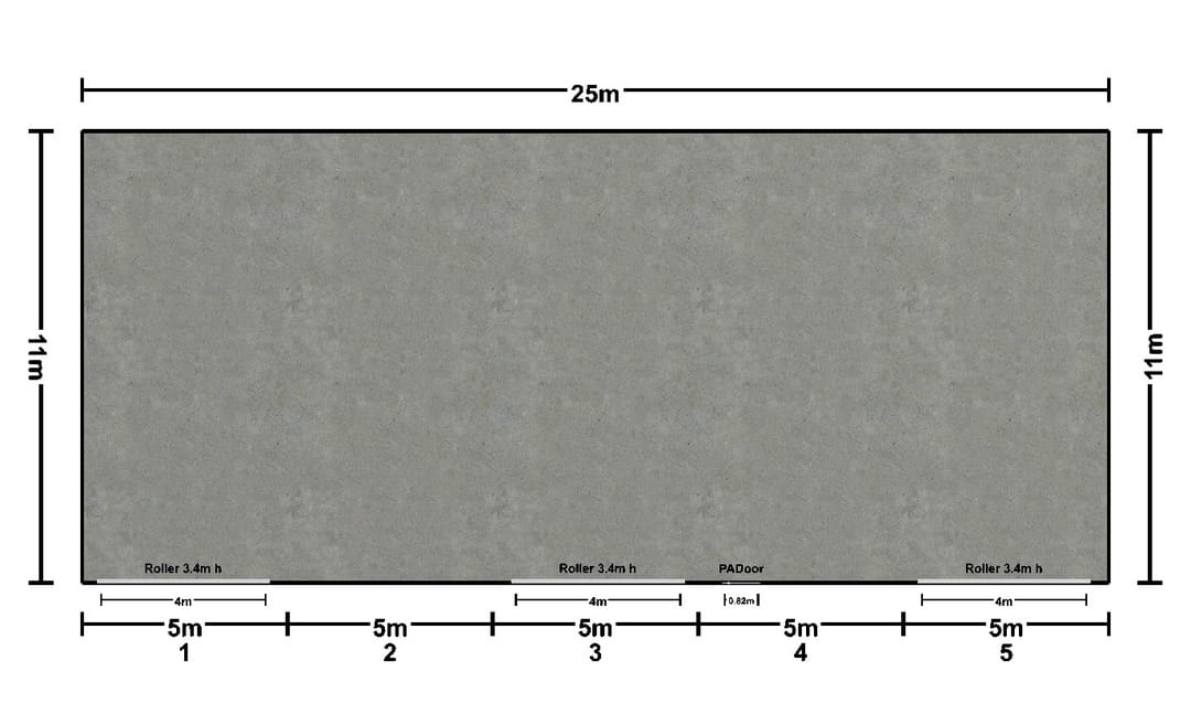- Dimensions: 25m x 11m x 4m