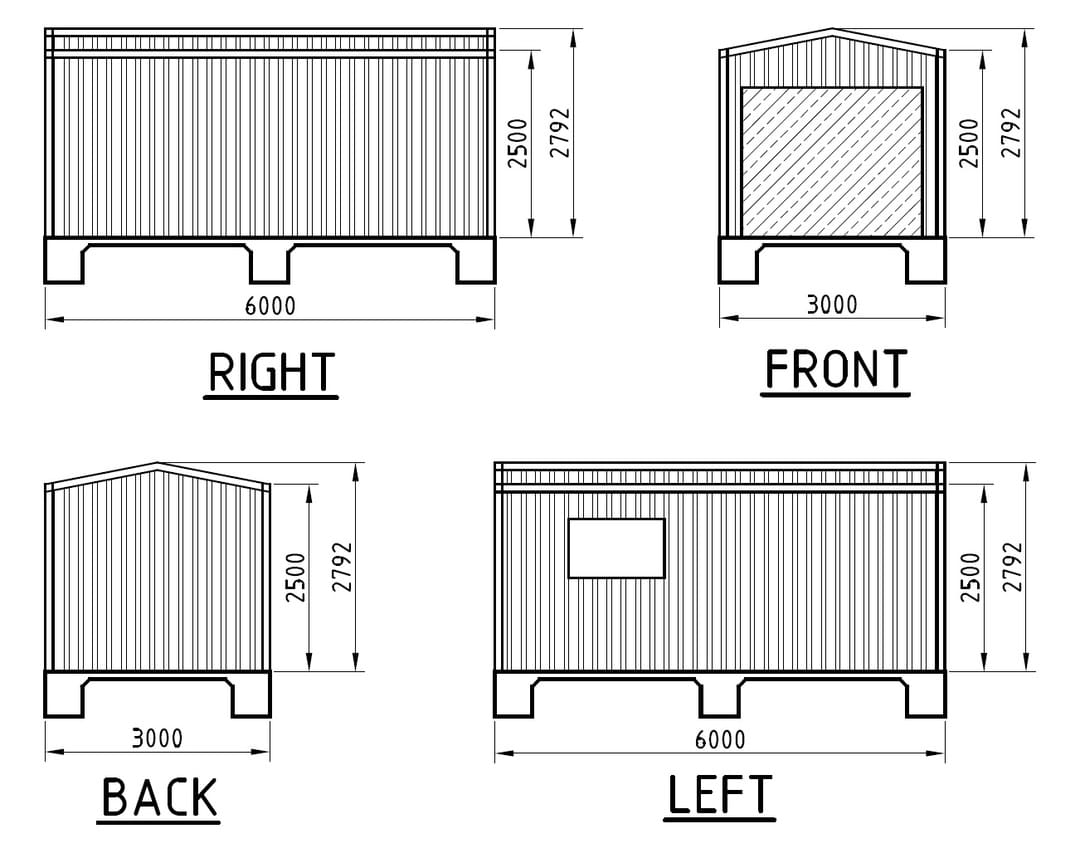 - Dimensions: 6m x 3m x 2.5m