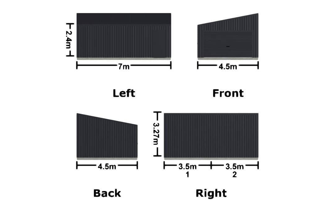 7m x 4.5m x 2.4m Parking Shed Victoria Park