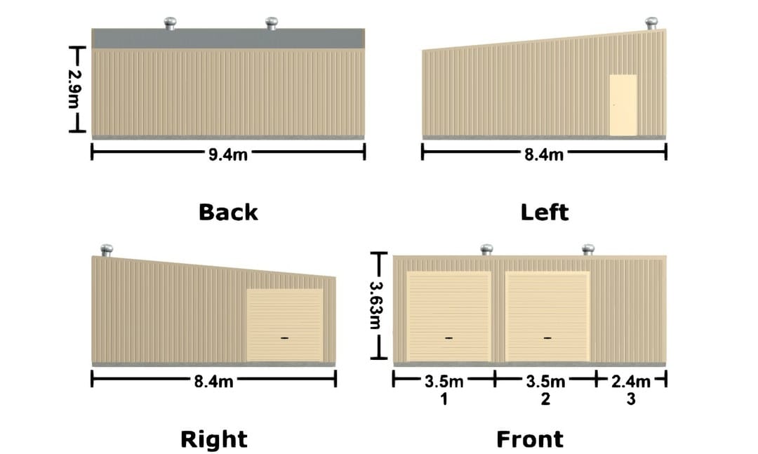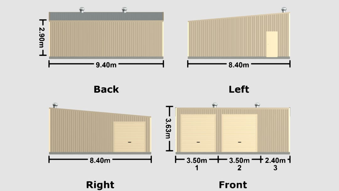 9.4m x 8.4m x 2.9m Shed Waikiki