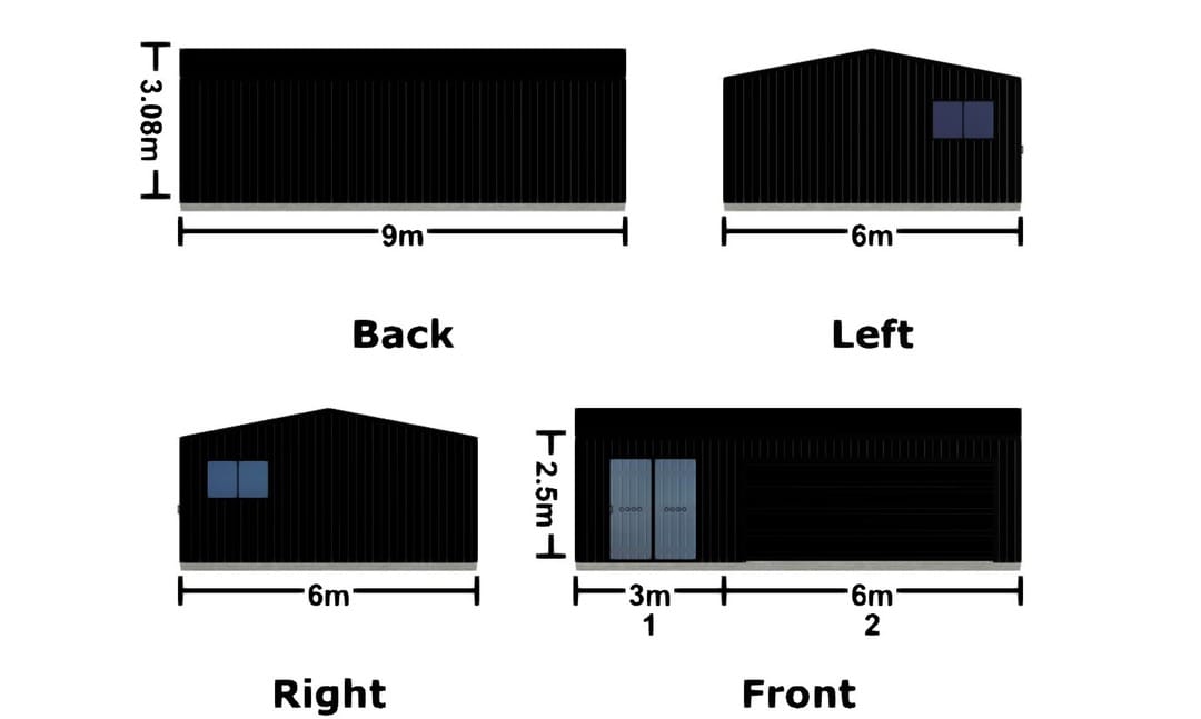9m x 6m x 2.5m Wide Door Garage Shed Ridgewood