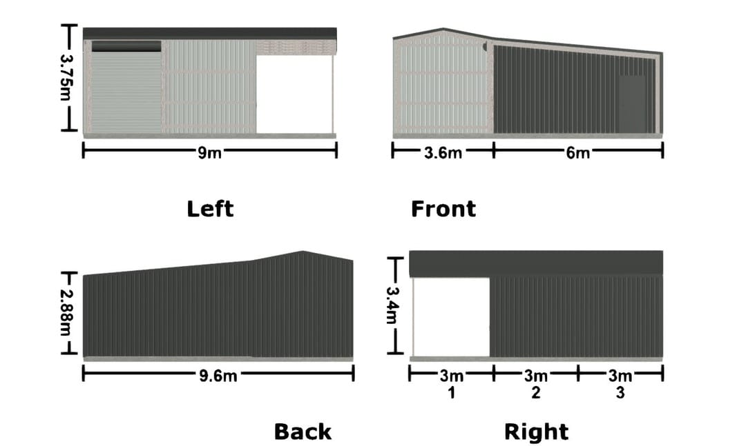 9m x 9.6m x 3m Boat and Workshop Shed Shoalwater